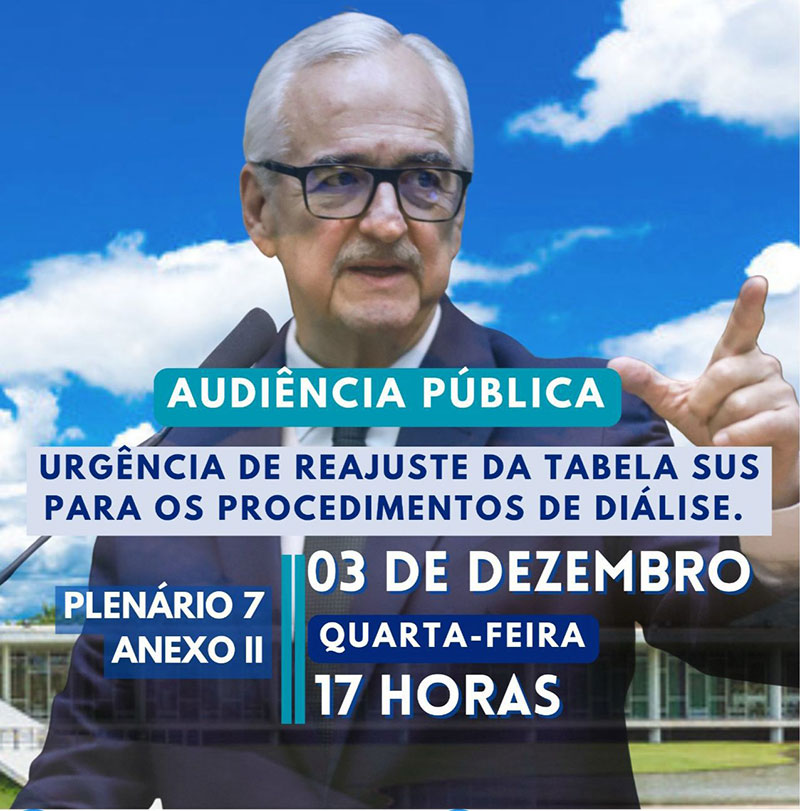 O deputado federal Pedro Westphalen, convida à todos para participar da Audiência Pública sobre a "Urgência de Reajuste da Tabela SUS para os Procedimentos de Diálise".